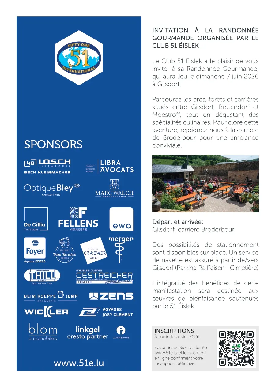 Randonnée Gourmande 2026 - Fifty-One Club Éislek